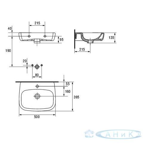 Умывальник Cersanit Facile 50 c отверстием для арматуры. Монтаж c пьедесталом или полупьедесталом.