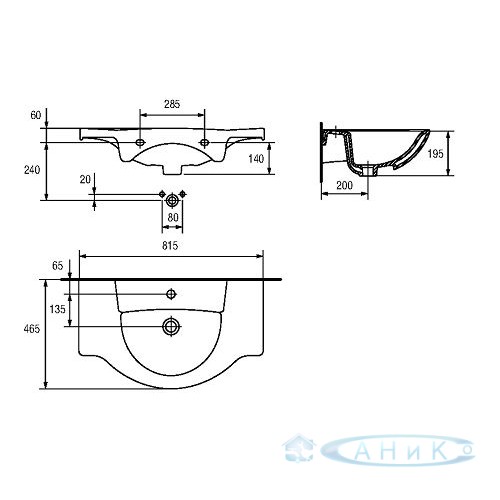 Умывальник мебельный Cersanit Libra 80 с отверстием для арматуры. Возможность монтажа с OLIVIA, DAHLIA.