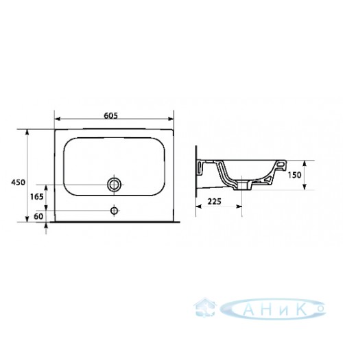 Умывальник мебельный Cersanit Colour 60. С отверстием для арматуры, монтаж на шкафчике серии Colour.