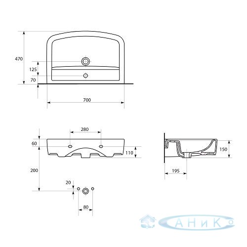 Умывальник мебельный Cersanit Pure 70 с отверстием, содержит