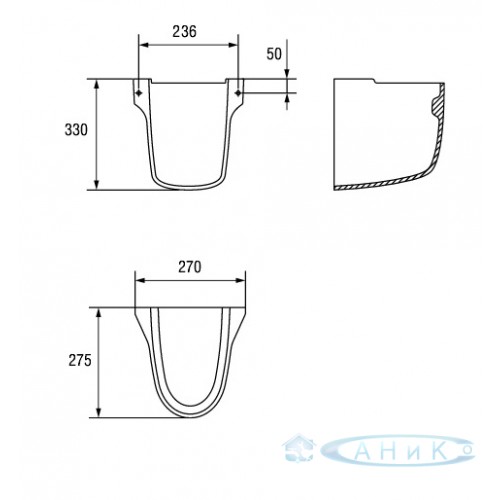 Умывальник Cersanit President 55 с отверстием под арматуру. Возможность монтажа с пьедесталом и полу..