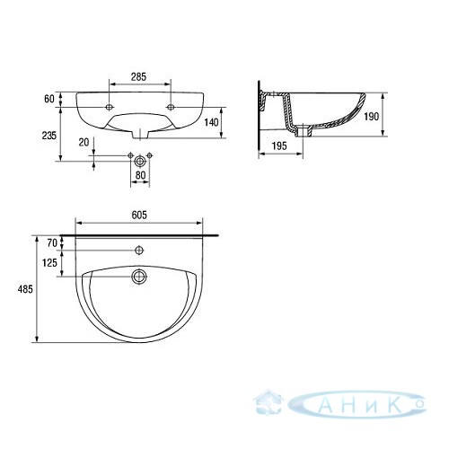 Умывальник Cersanit President 60 с отверстием под арматуру. Возможность монтажа с пьедесталом и полупьедесталом. С отверстием под смеситель.