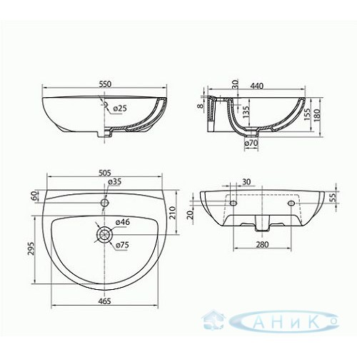 Для комплектации с умывальниками L71150, L71155, L71160. Страна - Украина Длина - 29,5 см Шир..