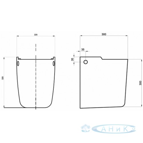 Без отверстия, перелив спереди. Внутренний размер: 46x35 см, наружный размер: 52x41 см. В комплект..