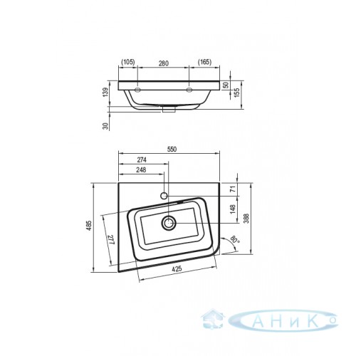 Умывальник Ravak 10° 55 левый (XJIL1155000)