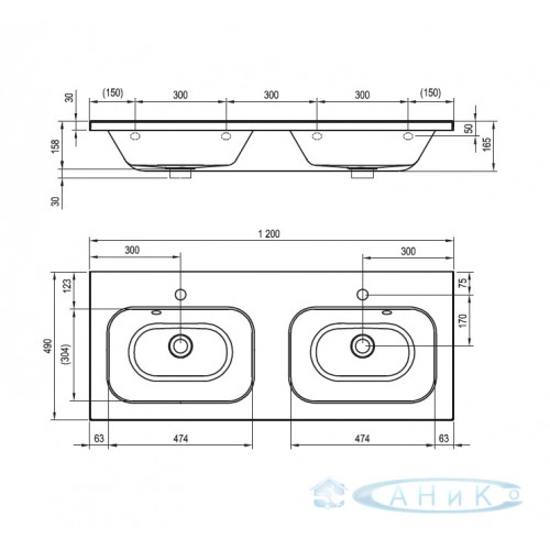 Умывальник подвесной или для комплектации со шкафчиком под умывальник Ravak Chrome (X000000536, X000000537). Крепления в комплекте.