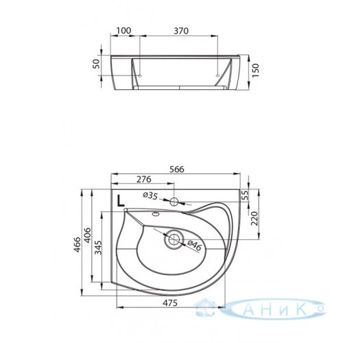 Умывальник Ravak Rosa 56 левый (XJ2L1100000)