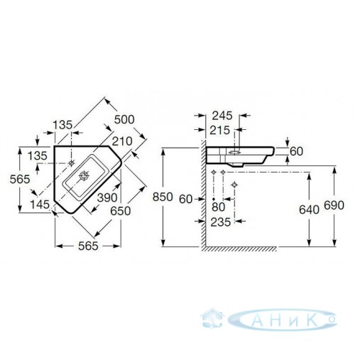 Умывальник Roca Dama-N 65 угловой (32778C000)