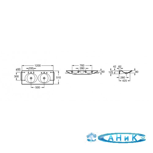 Отверстие для смесителя - 2 Центральных (+ 4 намеченных)/Без перелива