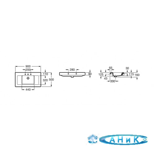 Настенная или встраиваемая в мебель раковина. Крепления в комплекте.