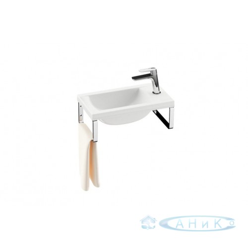 Миниумывальник подвесной, монтаж на стену на кронштейнах (B14000100P) (приобретаются дополнительно) или для комплектации со шкафчиком под умывальник Ravak Classic (X000000416, X000000417, X000000418, X000000419). Возможен монтаж в угол. Поворотом изделия на 180° получаем правый либо левый. Крепления в комплекте.