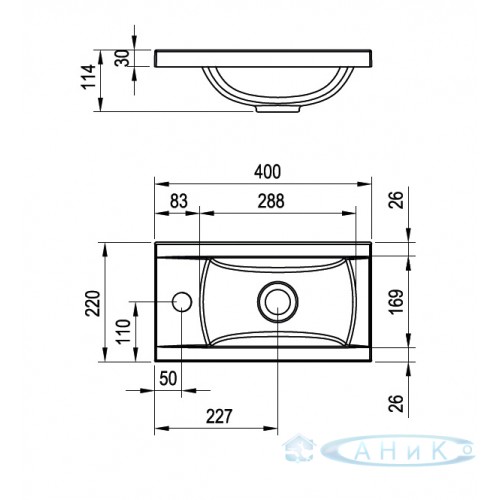 Отверстие для смесителя - Справа/Справа 35 мм /Без перелива