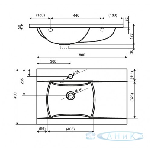 Умывальник подвесной с полкой справа или для комплектации со шкафчиком под умывальник Ravak Classic (X000000306, X000000351, X000000246, X000000429). Крепления в комплекте.
