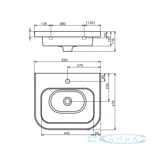 Умывальник Ravak Chrome 55 (XJG01155000)