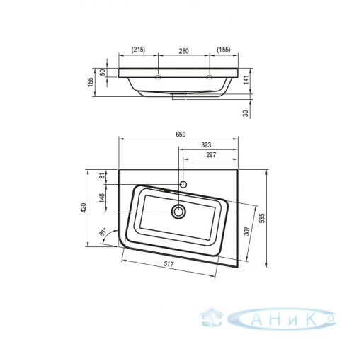 Умывальник Ravak 10° 65 правый (XJIP1165000)