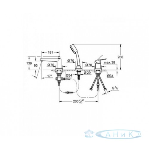 Смеситель с ручным душем 27390000 и металлическим душевым шлангом.