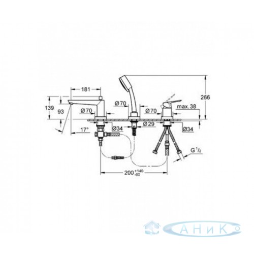 Смеситель с ручным душем 27390000 и металлическим душевым шлангом 1500 мм.