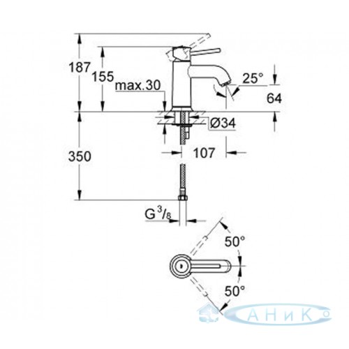 Смеситель Grohe Bau Classic для умывальника (23162000)